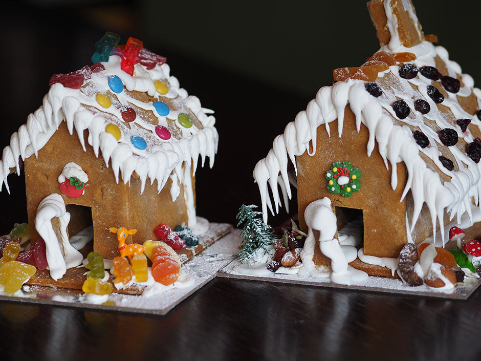 Try our vegan and gluten-free gingerbread houses which taste just as good our original recipe (Note: decorations are fruits and nuts)